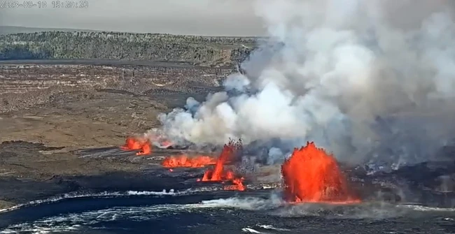 Erupția a fost precedată de o perioadă de activitate seismică intensă și de o escaladare rapidă spre vârf, conform USGS. Imaginile surprinse pe Webcam arată fisuri la baza craterului, din care se revarsă lavă.
