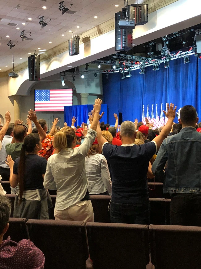 Fostul președinte a început unele mitinguri cu un videoclip mesianic realizat de persoane influente pe rețelele de socializare, care se deschide cu replica: "Nu este vorba despre o luptă, ci despre o luptă de succes: Am nevoie de un îngrijitor, așa că Dumnezeu ni l-a dat pe Trump".