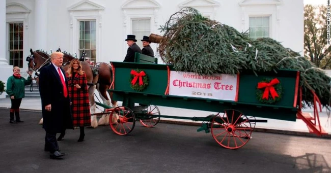 Donald şi Melania Trump au primit luni bradul care va fi instalat cu ocazia Crăciunului la Casa Albă. Fiul lor, Barron, în vârstă de 12 ani, nu a participat la eveniment, întrucât se afla la şcoală în acel moment.