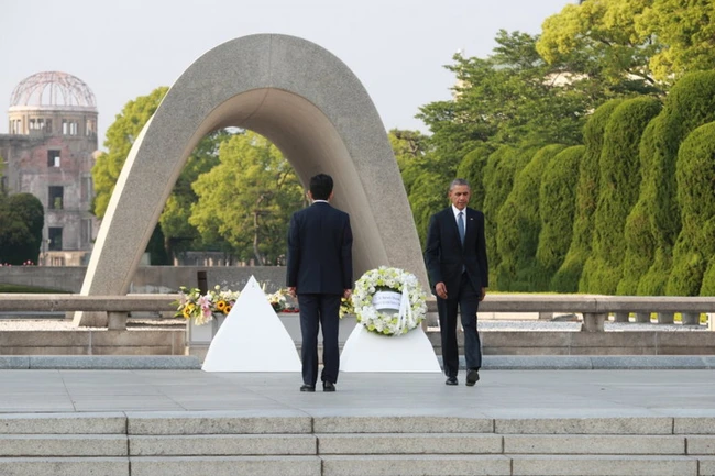 Liderul de la Casa Albă a fost primit la Hiroshima de Shinzo Abe, alături de care a intrat pentru câteva momente în muzeul dedicat victimelor bombei atomice, unde a semnat în cartea de condoleanţe. După aceea a depus o coroană de flori la memorialul de la Hiroshima şi s-a recules pentru câteva momente.