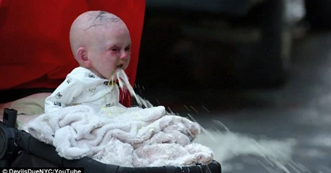 Atunci când sunt suficient de aproape, păpuşa se ridică brusc, iar primul lucru pe care-l văd oamenii este chipul deformat şi respingător al unui bebeluş de coşmar.Plânsetul este înlocuit de un ţipăt înfricoşător ce-i face să tresară puternic pe newyorkezi; mulţi dintre ei ţipă incontrolabil, alţii pur şi simplu fug de lângă căruciorul „blestemat”.