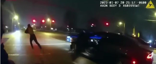 Cu toate că tânărul se afla întins pe o parte, având deasupra sa un polițist, el nu se întinde pe burtă. Astfel, un alt polițist îl avertizează că va utiliza pistolul cu electroșocuri și, după o circa un minut, Nichols se ridică și începe să fugă. Unul dintre polițiști apelează la arma cu electroșoc, însă tânărul afro-american reușește să scape.