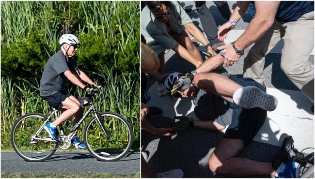 Joe Biden, 79 de ani, a vrut să se oprească pentru a discuta cu trecătorii şi jurnaliştii care îl aşteptau, dar a avut probleme în a-şi elibera piciorul din pedală. El a căzut lateral, în timp ce bicicleta sa era oprită.