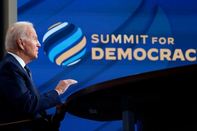 Şeful statului american, care a invitat liderii a 100 de ţări la acest summit, o alegere care a provocat tensiuni, a recunoscut că Statele Unite însele sunt nevoite ”să lupte fără încetare pentru a se afla la înălţimea idealurilor lor democratice”, în aceastp alocuţiune, la Casa Albă, pe un podium înconjurat de panouri cu inscripţia ”Summit for Democracy” şi un logo în culorile albastru, portocaliu şi alb.