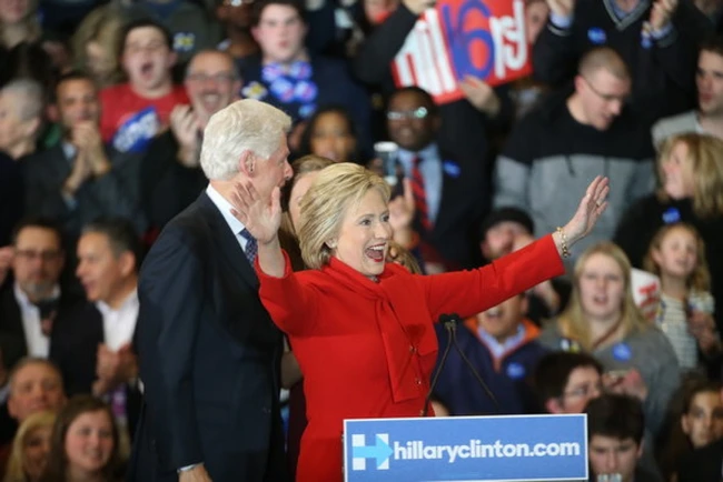 Fostul secretar de Stat şi rivalul său Bernie Sanders au fost creditaţi, anterior, atât unul, cât şi celălalt, cu 50% din voturile exprimate. Martin O'Malley, al treilea pretendent democrat, şi-a suspendat campania.