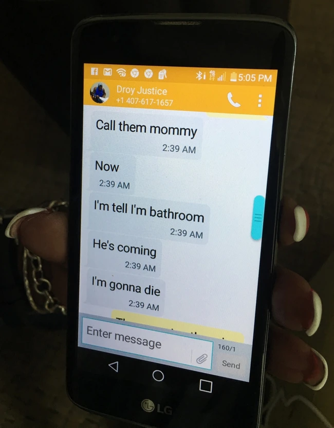 „Mami, te iubesc. Sunt în club, trag în noi“, i-a scris Eddie mamei sale, Mina Justice, la ora locală 02.06 (09.06, ora României), relatează BBC.