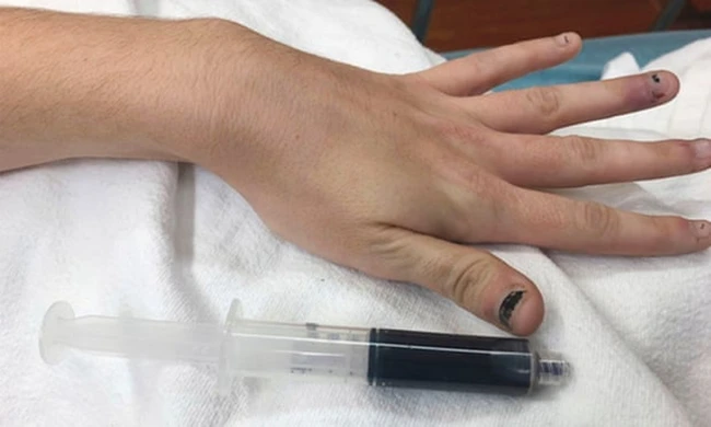 Potrivit unei lucrări din New England Journal of Medicine, femeia le-a spus medicilor că a folosit un analgezic local pentru a trata o durere de dinţi. S-a trezit a doua zi dimineaţă şi a mers la spital, spunându-le cadrelor meedicale: „Sunt slăbită şi sunt albastră”.
