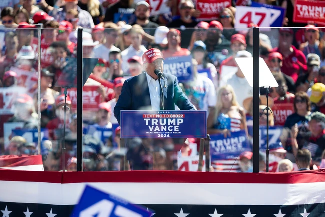 Înainte de comentariile sale la mitingul electoral din Carolina de Nord, candidatul republican a postat pe rețeaua sa un clip editat în care Harris spune „o cățea” și râde, clip care a făcut anterior înconjurul rețelei MAGA. Sunetul este dintr-un discurs din 2010 pe care vicepreșeinta l-a susținut la conferința „Women in Leadership” a Haas School of Business din Berkeley, unde ea a spus: „Când preluăm aceste poziții de conducere, și ca femei, trebuie să găsim un echilibru între a fi niște dure și a fi o cățea.” Trump a reluat clipul editat la mitingul său de sâmbătă.