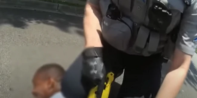 La puţin timp însă, un alt poliţist imobilizează victima cu ajutorul unui dispozitiv cu electroşocuri, apoi îl loveşte pe bărbat şi se pune cu genunchiul pe spatele şi umărul lui. Victima începe să să strige că nu poate să respire, asemeni ultimelor cuvinte ale lui George Floyd.