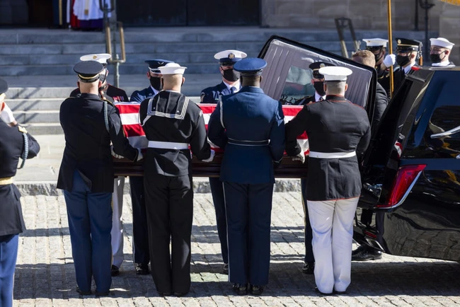 În prezenţa preşedintelui Joe Biden şi a soţiei sale Jill precum şi a principalilor lideri ai Pentagonului, fosta şefă a diplomaţiei americane Madeleine Albright a evocat ''un personaj care aproape a depăşit istoria, virtuţile sale fiind homerice: onestitate, demnitate, loialitate şi un angajament neclintit faţă de profesia sa şi de a-şi ţine cuvântul''.