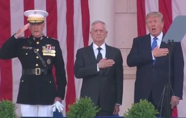 Atitudinea liderului Casei Albe a contrastat puternic cu cea a secretarului Apărării, James Mattis, precum şi cu cea a generalului Joseph Dunford, care au fost la rândul lor prezenţi la evenimentul organizat la Cimitirul naţional Arlington din Virginia.