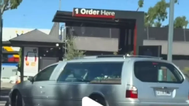 0Imagini surprinzătoare au devenit virale după ce un dric a fost filmat trecând prin linia de drive-thru a unui restaurant McDonald’s lângă orașul Adelaide, din Australia, relatează New York Post. Momentul neobișnuit a atras atenția internauților, deoarece în interiorul vehiculului era vizibil un sicriu.