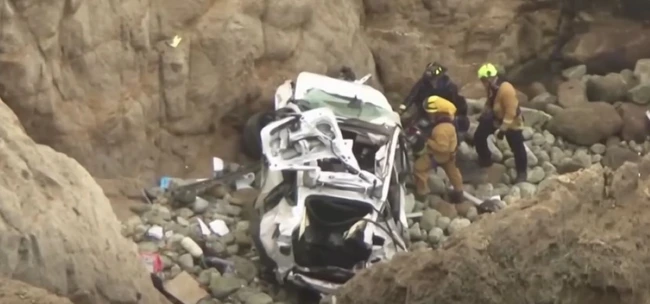 Conducătorul auto, soția și cei doi copii din mașina Tesla au fost salvați, luni, în zona Devil's Slide din Comitatul San Mateo, a declarat poliția rutieră din California.