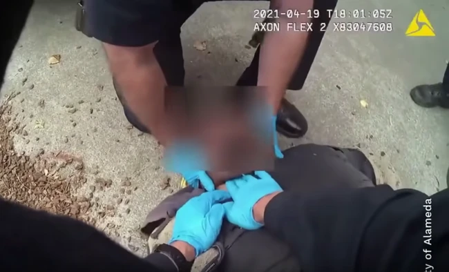 Incidentul a avut loc pe data de 19 aprilie, în oraşul Alameda. În imagini se poate observa cum victima este surprinsă de agenţi într-un parc public.