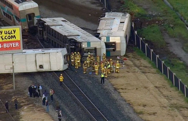 Un tren de pasageri a deraiat şi s-a răsturnat, în California, 30 de persoane fiind rănite