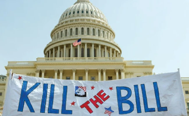 Mai multe sute de opozanţi ai reformei au protestat, sâmbătă şi duminică, în faţa Capitoliului, scandând „Kill the Bill" (Ucideţi proiectul de lege). „Ne vom aminti de asta în noiembrie", au spus ei, făcând aluzie la alegerile pentru Congres din toamnă, când se preconizează un eşec al democraţilor. Protestatarii l-au mai invitat pe „Obama Tze Dong" sau „MaObama" (jocuri de cuvinte de la numele fostului lider chinez Mao Tze Dong) să se ducă în exil în Europa.