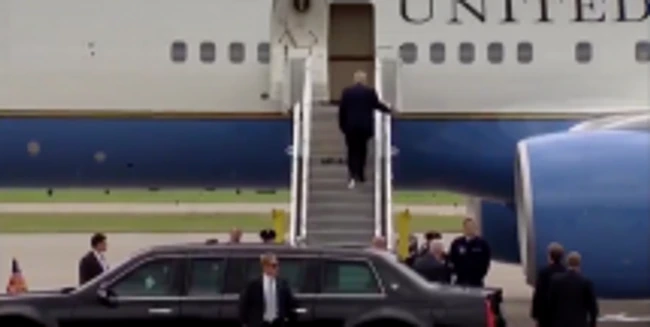 VIDEO Moment penibil cu Donald Trump. Preşedintele SUA, surprins cum urcă în avion cu o bucată de hârtie igienică lipită de talpa pantofului