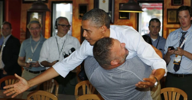 VIDEO Obama a fost ridicat în braţe de un republican, proprietar al unei pizzerii