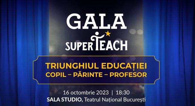 Profesori, elevi și părinți, alături de reprezentanți ai mediului de afaceri și susținători ai educației din România, se vor întâlni luni, 16 octombrie, la Gala SuperTeach 2023 , ce va avea loc la Teatrul Național București. Evenimentul va celebra implicarea tuturor actorilor importanți în creșterea calității școlii românești și transformarea mentalității în segmentul educației.