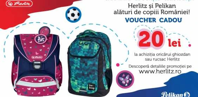 Şi dacă mai stai pe gânduri, iată încă un motiv foarte serios pentru a te grăbi: achiziţionează un rucsac Herlitz în perioada următoare şi-l poţi dota şi cu rechizite gratuit! Profită acum, pentru orice rucsac cumpărat primeşti un voucher cadou de 20 lei care-l poţi folosi la achiziţia suplimentară de rechizite Herlitz, Pelikan, Tiger Family şi Serve. Găseşti mai multe detalii despre oferta educaţională Herlitz şi pachetele promoţionale pentru şcoală, la partenerii autorizaţi sau pe www.herlitz.ro.