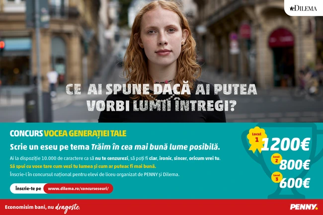 0Revista Dilema, una dintre cele mai respectate publicații culturale din România, lansează un nou Concurs Național de Eseuri dedicat elevilor de liceu din România și Republica Moldova. Alături de ea, în calitate de partener principal, se află PENNY, un susținător constant al inițiativelor educaționale și culturale destinate tinerilor.
