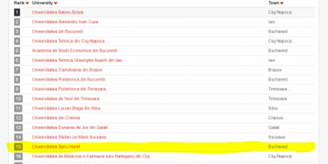 Într-un top la nivel internaţional redat tot de cei de la UniRank, Universitatea Sipiru Haret se clasează pe locul 3903.