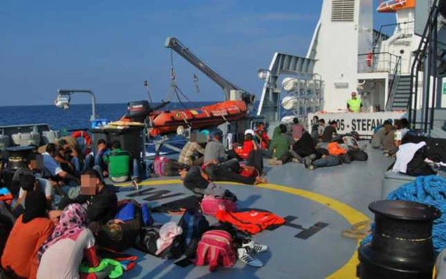 Astfel, o ambarcaţiune de mici dimensiuni de pe „Ştefan cel Mare“ a fost trimisă pentru a identifica nava, poliţiştii constatând că este un pescador din lemn, fără pavilion, supraîncărcat cu migranţi.