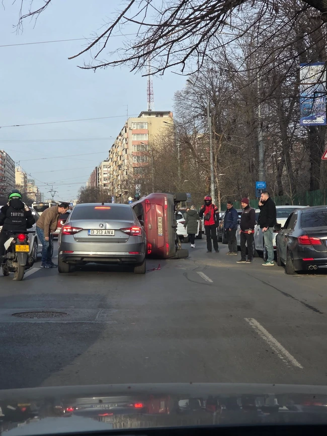 Accident grav lângă Spitalul Colentina, în București: șase mașini implicate, una s-a răsturnat. O femeie rănită a ajuns la spital