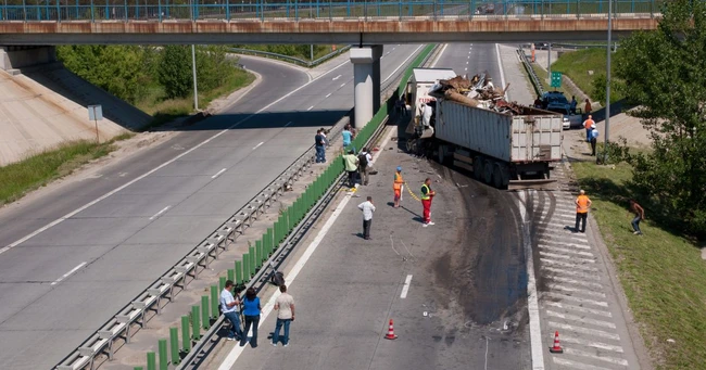 Șoferul unui autoturism de teren a încetinit brusc, iar şoferul unei cisterne care circula în spatele acestuia nu a mai putut să frâneze la timp, astfel că a lovit maşina de teren, apoi a ajuns pe contrasens, blocând cele două benzi.