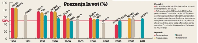 Participarea a crescut la al doilea tur al prezidenţialelor din 2009, când din cei 18,464 de milioane de alegători aflaţi pe liste au votat 10,484 milioane de persoane.