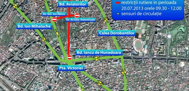 - bd. Aviatorilor, pe ambele sensuri de circulaţie, între Piaţa Victoriei şi Piaţa Charles de Gaulle;