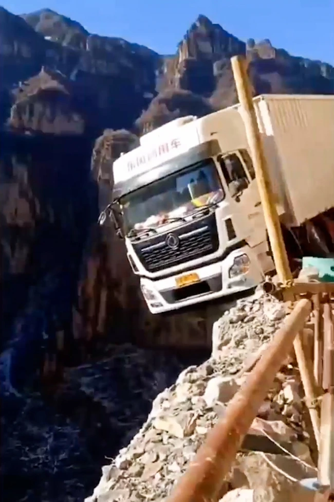 Un camion a rămas suspendat pe marginea unui drum îngust de munte din nordul Chinei, după ce şoferul a fost ghidat greşit de GPS. Incidentul a avut loc în oraşul Chanhzhi, din provincia Shanxi.