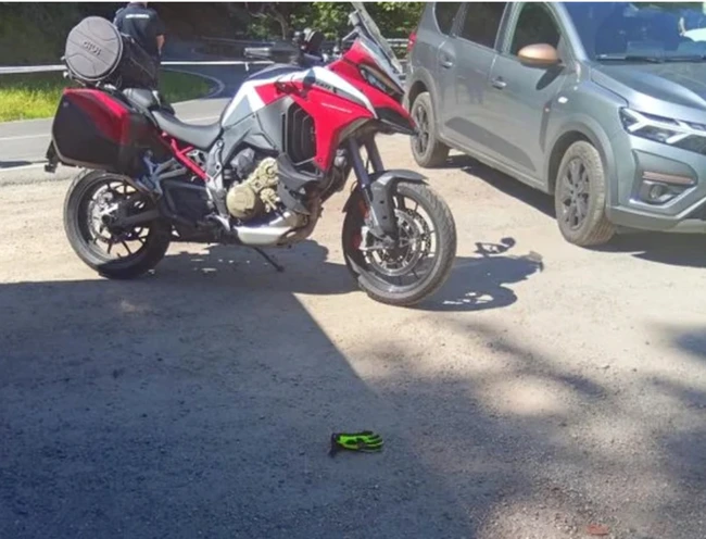 Motocicleta bărbatului a fost găsită parcată pe marginea drumului, lângă ea aflându-se o mănușă și telefonul mobil, căzut în prăpastie.
