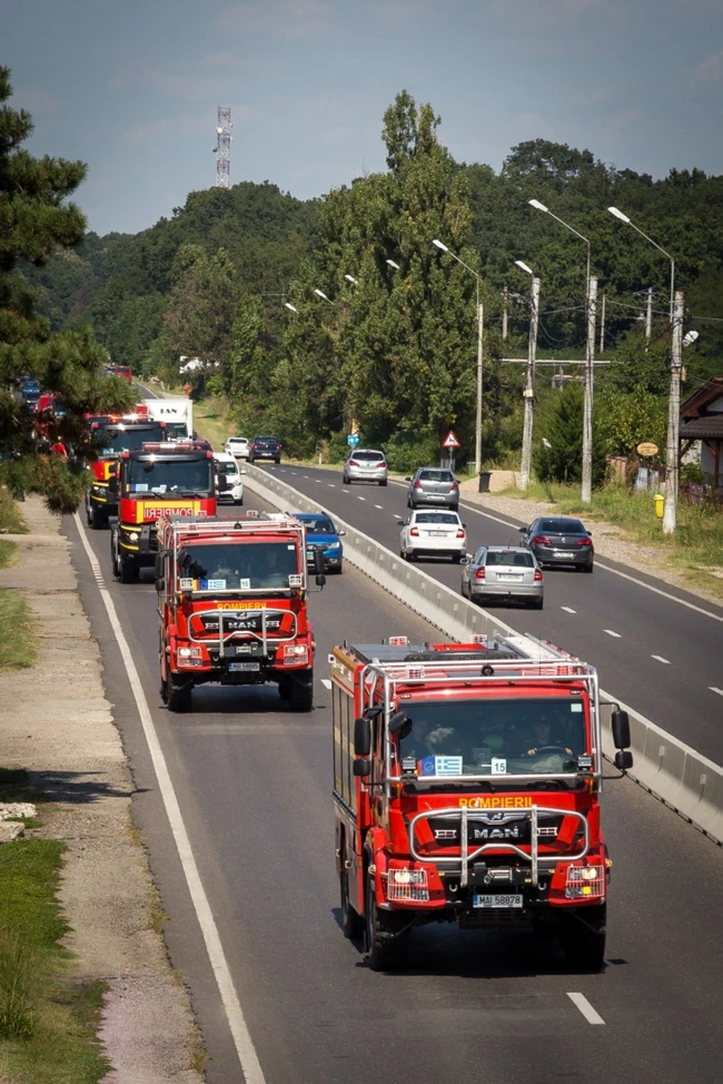 România a trimis în Grecia 142 de pompieri cu opt autospeciale de stingere incendii de pădure, trei cisterne, un centru de comandă, două containere Multirisc, un autocar de intervenţie, precum şi alte mijloace de sprijin logistic, printre care şi o dronă.