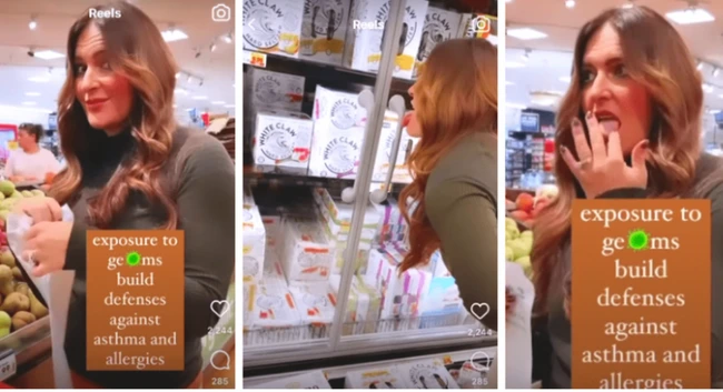 0Jodie Meschuk, o bloggeriţă cunoscută ca antivaccinistă, s-a filmat lingând căruciorul de cumpărături şi nu numai într-un supermarket şi a postat videoclipul de reţelele de socializare.