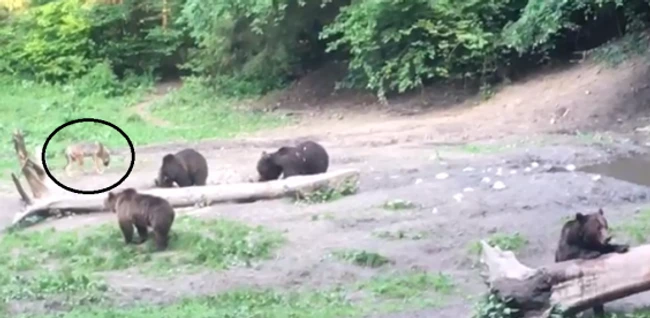Cum a decurs întâlnirea rară dintre un lup şi un grup de urşi într-o pădure din Braşov VIDEO