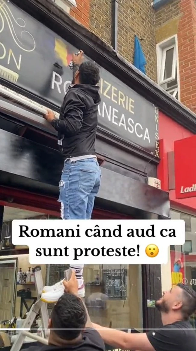 Proprietarul frizeriei românești de pe High Street North, East Ham (Estul Londrei), a fost filmat în timp ce era urcat pe o scară și ștergea în grabă drapelul României și scrisul „Frizerie românească” de pe geamul salonului sau.