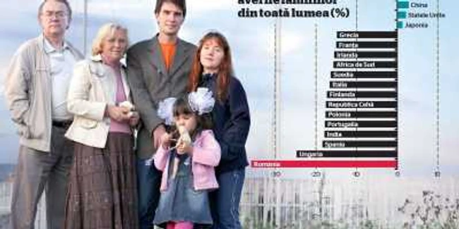 România este singura ţară din lume unde averea medie pe familie a scăzut, în ultimul an, cu mai mult de 30%. Acest indicator, bogăţia gospodăriilor, cuprinde averea totală, cu depozite bancare, acţiunile deţinute la diferite societăţi, dar şi proprietăţile imobiliare.
