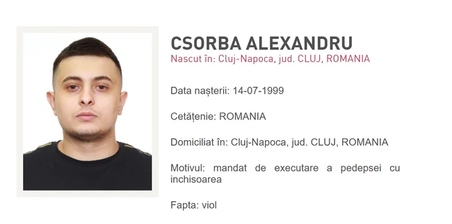Tânărul, condamnat de Judecătoria Cluj-Napoca la 5 ani de închisoare pentru săvârșirea infracțiunii de viol, era căutat la nivel național și internațional. Conform anchetatorilor, în noaptea de 29 spre 30 iunie 2020, acesta, împreună cu alte două persoane, ar fi dus o minoră într-o zonă izolată de la marginea municipiului Cluj-Napoca, unde i-ar fi oferit o pastilă cu efecte psihoactive și, prin violență, ar fi constrâns-o să întrețină raporturi sexuale.