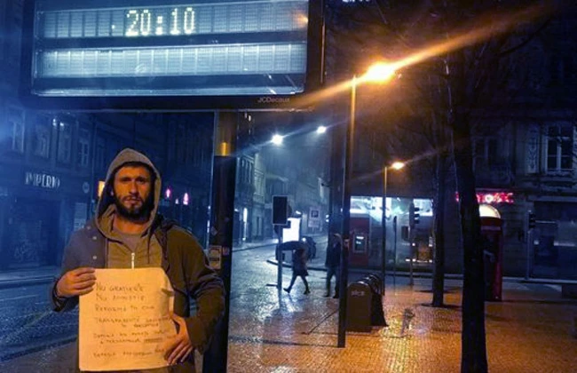 FOTO Actorul Dragoş Bucur, protest solitar în Portugalia