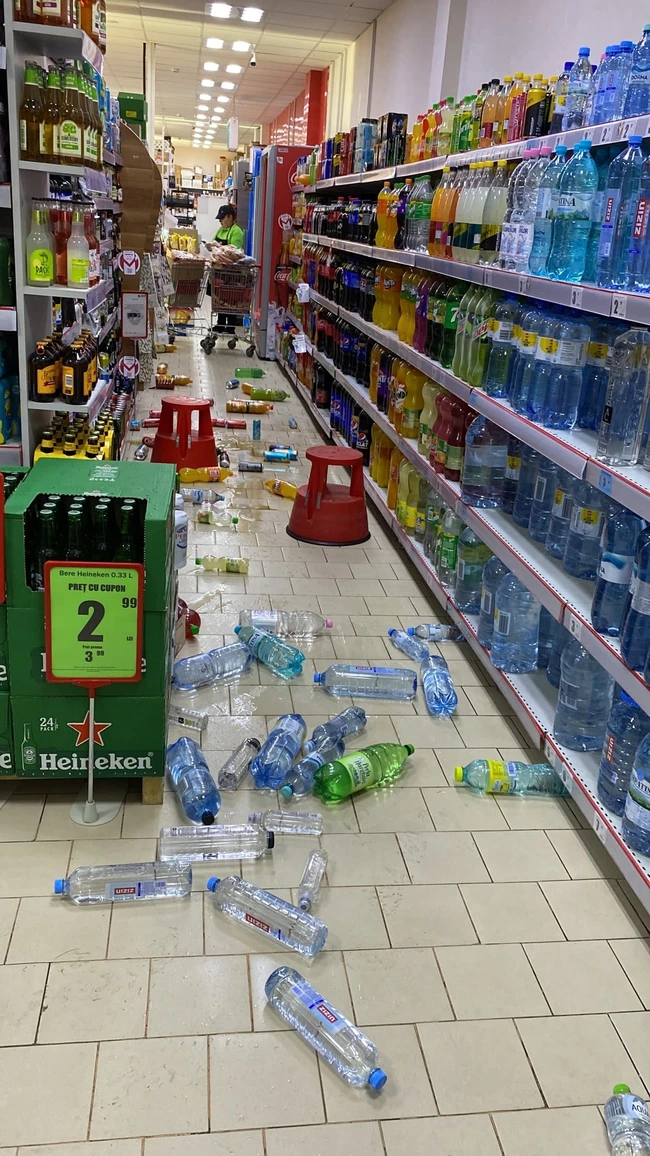 0Seismul care s-a produs marți, în România, la ora 15.16, s-a resimţit puternic în mai multe zone ale ţării. Astfel, pe reţelele de socializare au început să apară imagini cu efectele cutremurului. Din pozele distribuite de utilizatori se vede cum marfa de pe rafturile magazinelor s-a răsturnat în timpul seismului.