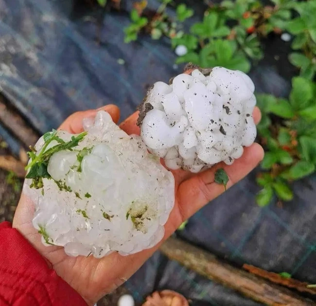 Ploaia torențială și grindina de mărimea unei mingi de tenis a avariat culturi agricole și mașini.