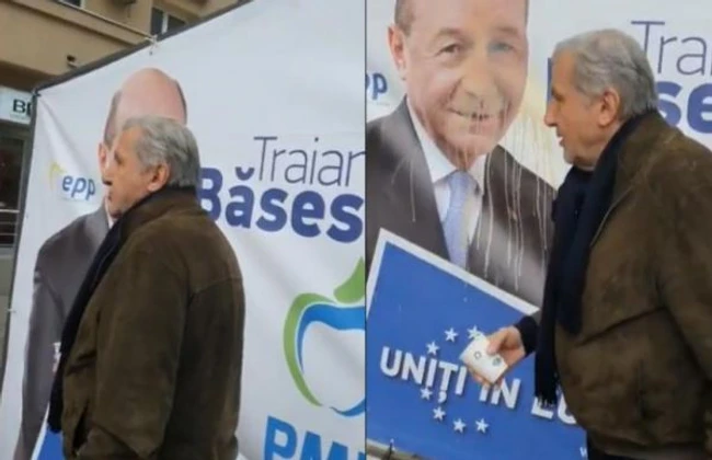Preşedintele PMP Bucureşti Cristian Petrescu a depus, marţi, la BEC o sesizare în legătură cu faptul că Ilie Năstase a aruncat cu cafea într-un afiş cu Traian Băsescu, cerând sancţionarea acestuia, potrivit legii, cu amendă între 1.000 şi 2.500 lei pentru deteriorarea materialelor electorale.