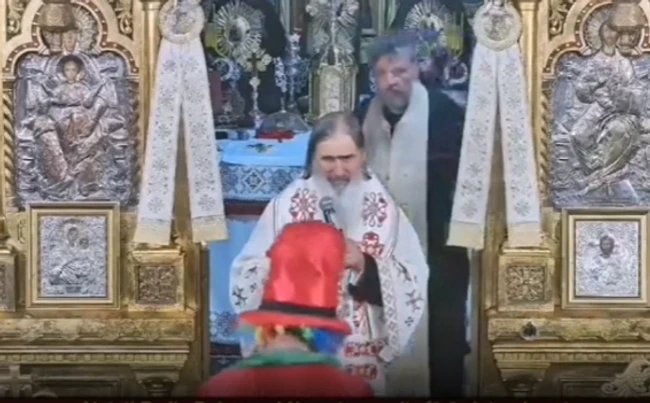 Video Incident în timpul unei slujbe oficiate de ÎPS Teodosie. Un clovn a ieșit din mulțime și a mers în genunchi. Reacția arhiepiscopului