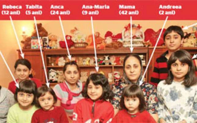 „Lucian, Anca, Simona, Nicoleta, Avram, Samson, Claudia, Abel, Daniel, Rebeca, Lidia, Ana-Maria, Sunamita, Tabita şi Andreea. Ăştia sunt!", spune ea, încântată că i-au ieşi la numărătoare, pe degete. Cel mai mare are 27 de ani, iar cel mai mic, 2. Stau cu toţii sub acelaşi acoperiş, într-o căsuţă modestă, dar curată, cu cinci încăperi, în sectorul 2, iar în ultimele luni li s-au alăturat şi soţia şi cei patru prunci ai băiatului cel mare.