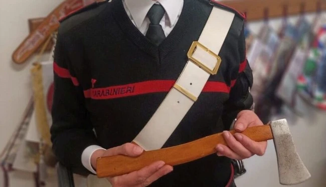 Oamenii din bar au sunat la carabinieri, iar aceştia i-au confiscat securea şi îl cercetează acum pentru ameninţare şi port ilegal de armă albă.