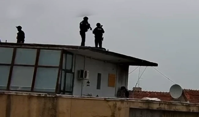 Video Momentul în care mascații intervin pentru capturarea „lunetistului” cu armă airsoft, aflat pe un bloc din Capitală