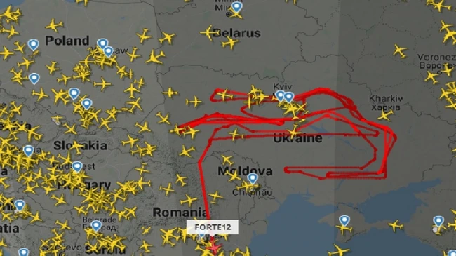 Decolată din Italia, aeronava fără echipaj uman la bord a ajuns în Ucraina, in noaptea de duminică spre luni, în jurul orei 00,00, traversând spaţiile aeriene ale Greciei, Bulgariei şi României şi a survolat în buclă, de mai multe ori, la o altitudine medie de 18.000 de metri, zona apropiată Crimeei, dar şi frontierele cu Rusia şi Belarus. Drona s-a aflat pe teritorul Ucrainei cel puţin 16 ore.