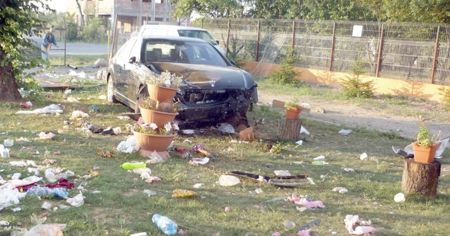 „Dacă, în calea ei, maşina nu dădea peste un trunchi de copac ornamental, intra în clădire. A distrus poarta de fier, containerul de mizerie, în cădere poarta a lovit dubiţa instituţiei pe care azgâriat-o, a distrus ghivece cu flori, a rupt robinetul de la bazinul cu apă care alimentează clădirea”, a declarat şefa centrului Mihaela Buda.