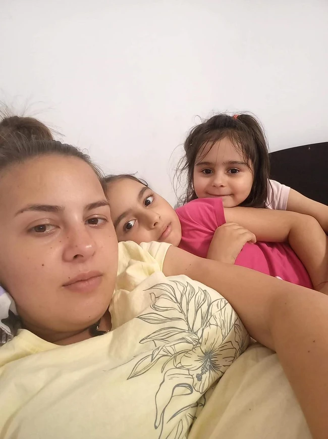 Ucraineanca a venit în România în luna mai și este mama a trei fetițe, una de 5 ani, alta de 8 și un bebeluș născut cu probleme și operat în România. Tânăra este însoțită de mama și sora ei.